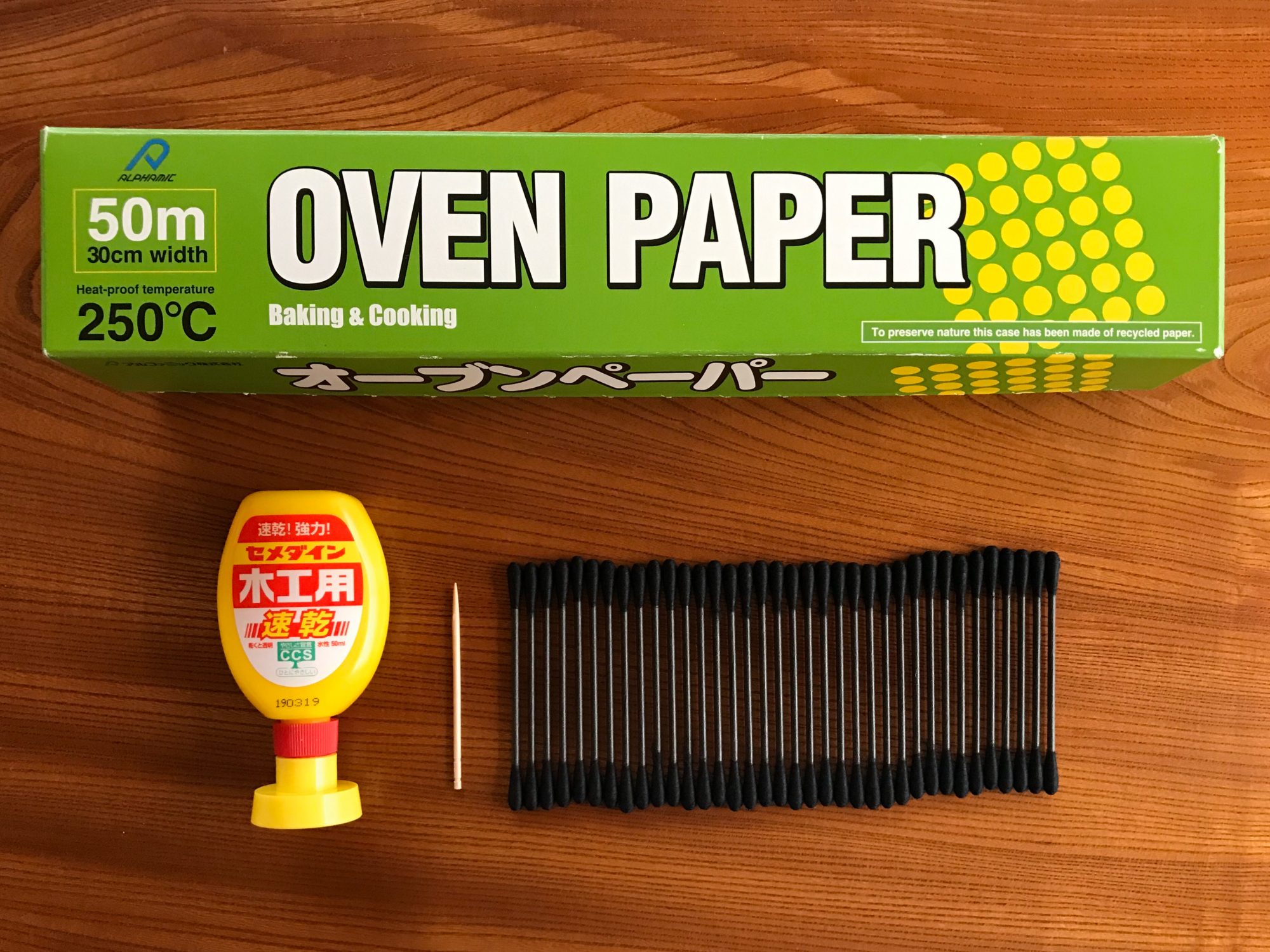 綿棒36本、ボンド(速乾タイプがいいみたい)、つまようじ1本