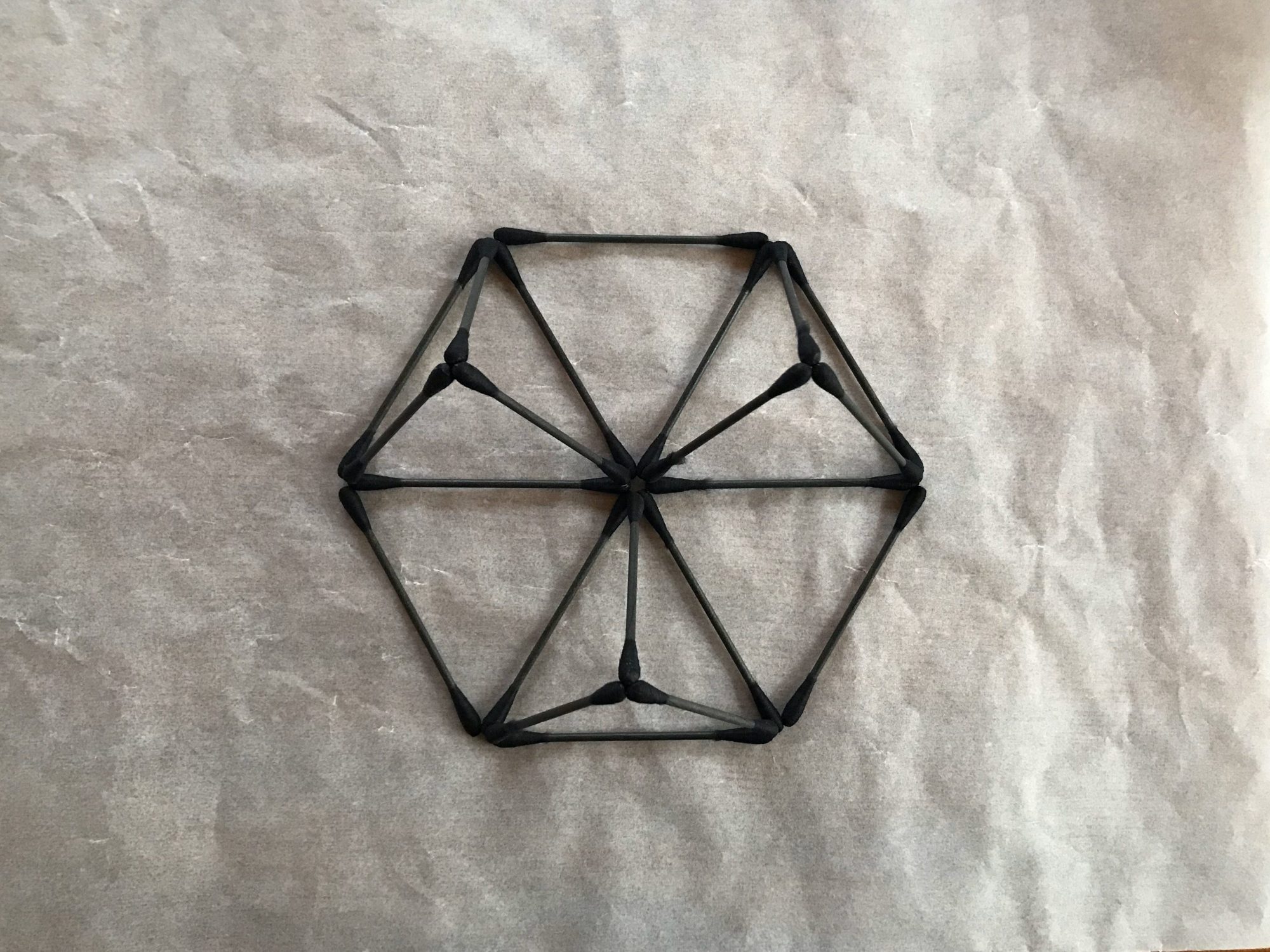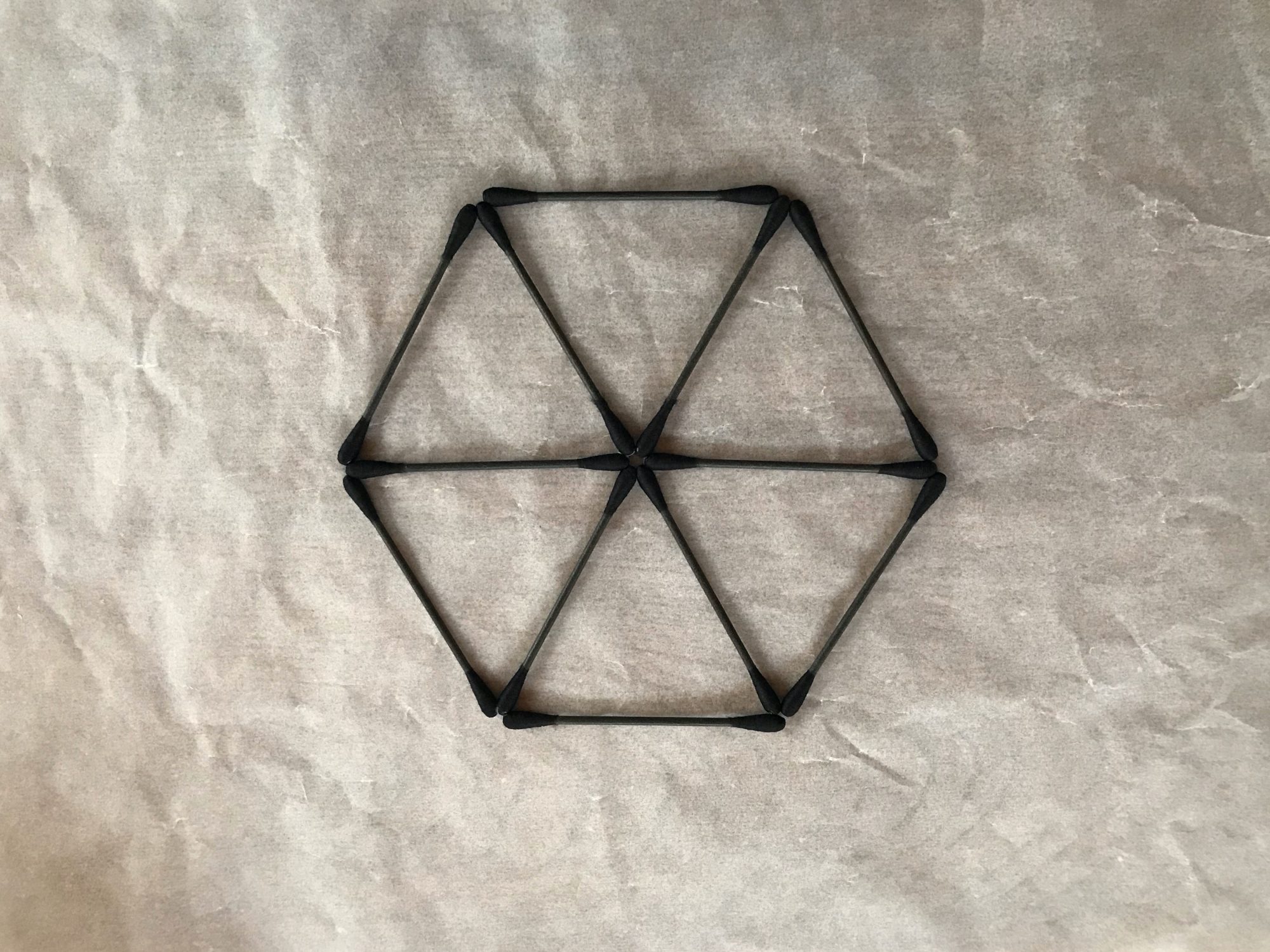①綿棒12本で六角形を作ります。乾くまで待ちましょう。