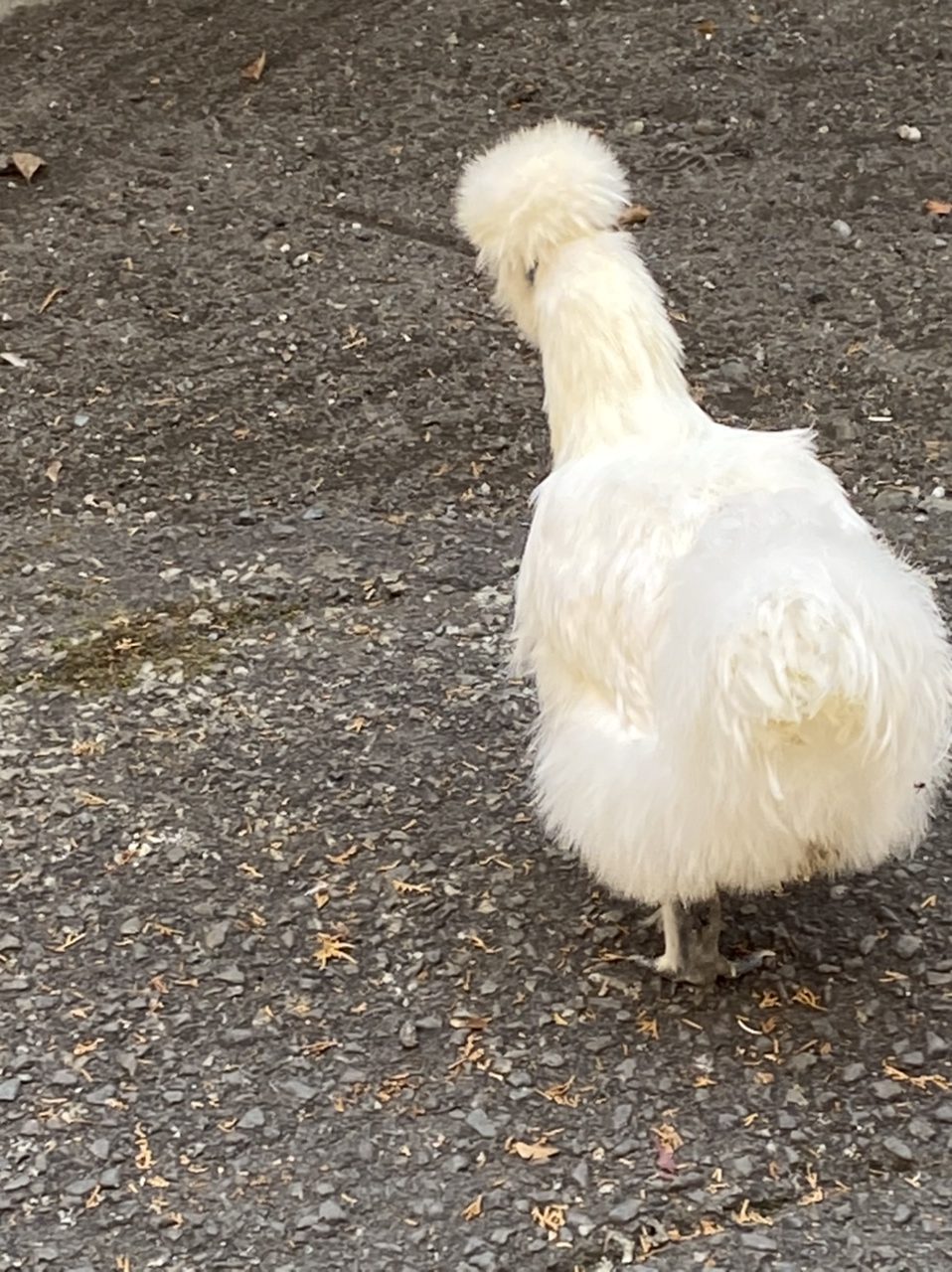 社務所の前にいた美しい烏骨鶏に